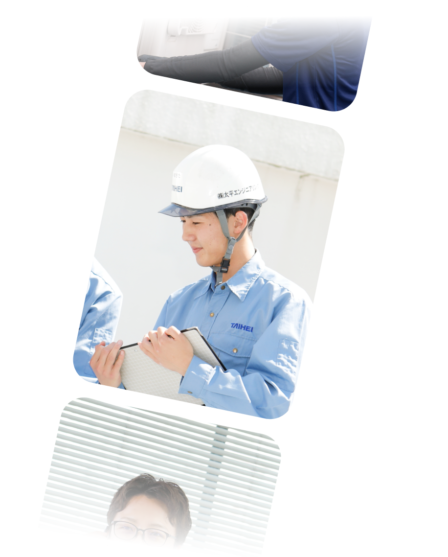 空調・給排水設備のプロフェッショナルとして、設計・施工からメンテナンス、リノベーションまでトータルサービスを提供できることが当社の強みです。今回はメインとなる施工管理職・メンテナンス職・サービスエンジニア職の3職種をご紹介します。